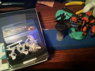 Great Coat Grey. It has a bluish tint to it and it gives a heavy felt appearance to any clothing that you paint it on. Then again that could be just my imagination. All the same I picked it because it is part of the color scheme that Privateer Press uses for their Winter Guard models. That and I haven't had the chance to play with it yet. I might even paint it on the Juggernaut and Destroyer to give them a better tie in with Sorcha. Sorcha's in game fluff should answer any questions as to why I would want to match her to her infantry units. (was that a spoiler? maybe.)